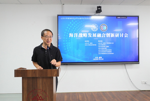 7月13日,由北京大学威海海洋研究院、山东大学(威海)联合主办的海洋战略发展融合创新研讨会在山东大学威海校区举行。中国科学院院士王会军,威海市人民政府副市长张善东,山东大学威海校区党工委书记仇道滨,威海市科学技术局党组书记、局长谭远国,北京大学威海海洋研究院院长胡永云出席会议并致辞。会议由山东大学威海校区副校长夏利东主持。