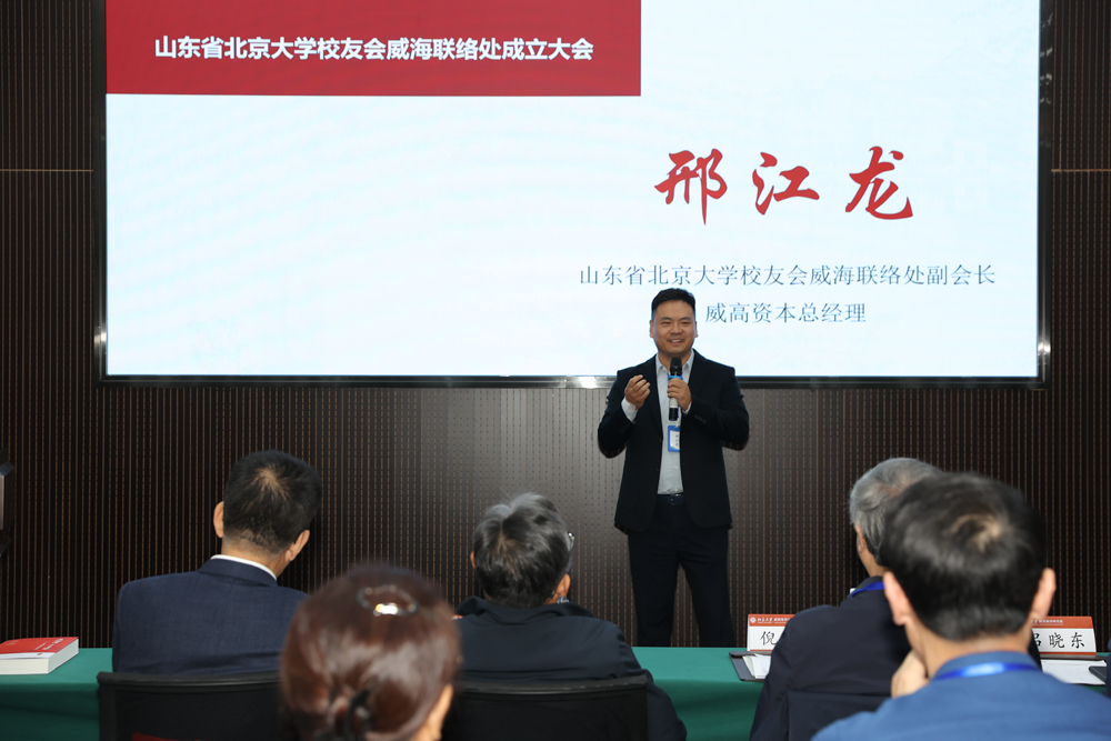 北大威海校友联络处副会长、威高资本总经理邢江龙代表威海校友发言。