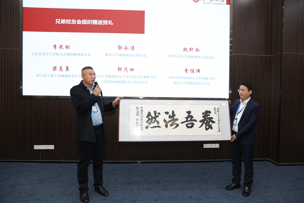 清华大学、中国人民大学、哈尔滨工业大学、山东大学、中国高校联盟等兄弟校友会组织分别向北大威海校友联络处赠送了贺礼。