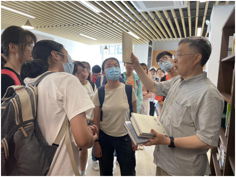 周力平向同学们介绍图书馆