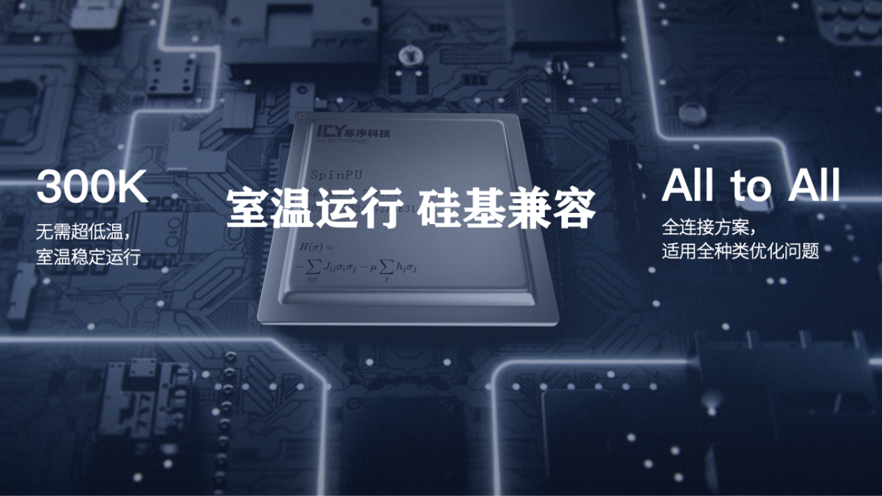 SpinPU®-M01磁概率计算芯片采用磁学路线,达到了1024概率比特数、1023的连接度和16的位宽精度,可在室温下工作,更易于集成和扩展。该芯片实现了D-Wave Quantum(NYSE: QBTS)的绝热量子计算机无法实现的比特间的全连接性,可以解决绝热量子计算机(D-Wave的产品等)无法解决的1024节点全连接Max-Cut求解问题。在1024节点全连接Max-Cut问题求解测试中,SpinPU®-M01与Intel2023年Q3发布的主系列性能最高的 Intel i9-14900k CPU 相比,在相同求解精度下,片上求解平均加速超54倍,在更大规模下展现出数百倍速度优势。